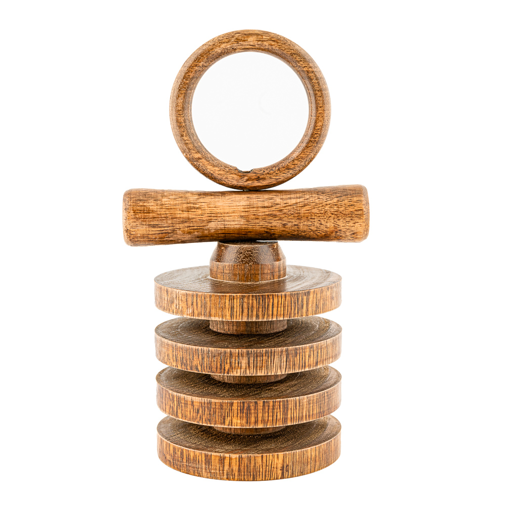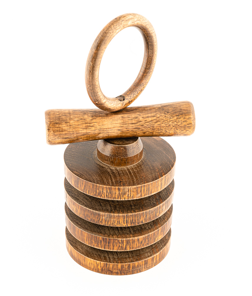 A pilha Ankh feita em madeira, tem quatro discos que representam os quatro elementos (ar-água-terra-fogo).